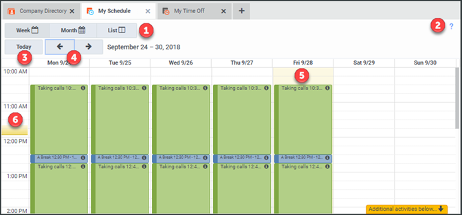 The My Schedule view enables you to view your schedule in Week, Month, or List modes.