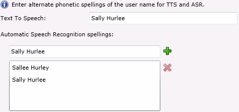 Type the TTS phonetic spelling for the user in the Text to Speech field: