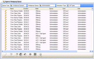 Shows current activity in an agent's or a workgroup's interaction queue. The view can be filtered by interaction type, to show calls, callbacks, chats, emails, generic queue objects, and workflow items, or all interaction types.