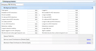 Statistics for a selected workgroup. This view does not show the workgroup queue or the directory.