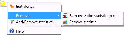 Each statistic control offers quick access to menu of frequently used commands. To display this shortcut menu:
