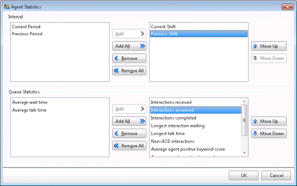 Interval and Queue Statistic Selection dialog