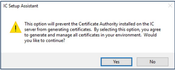 4. Click Use Third Party Certificates and check Do not allow the Certificate Authority installed on your IC Server to sign certificate checkbox.