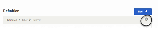 The Extraction Job Wizard guides you through the process of creating a new data extraction job. You can cancel a job creation, before submitting, by clicking the X in the navigation bar.
