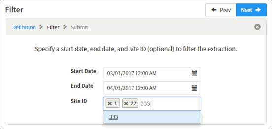 Note  Site IDs are optional. If the field is empty, data for all sites is extracted.