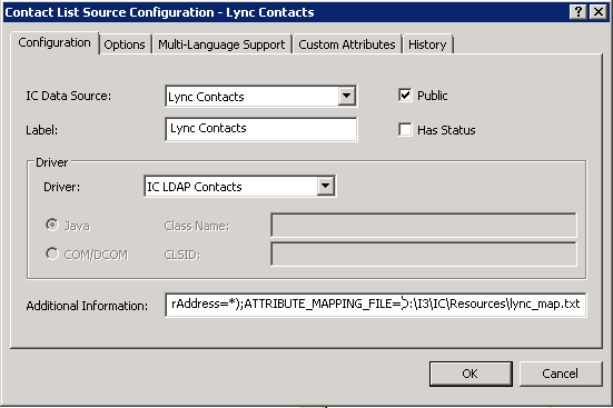 SEARCH_FILTER=(msRTCSIP-PrimaryUserAddress=*);ATTRIBUTE_MAPPING_FILE=D:\I3\IC\Resources\lync_map.txt