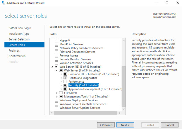 Enable IIS for Windows Server 2016