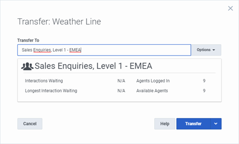 Note: Before you can transfer a call to a workgroup, you need the appropriate right assigned in Interaction Administrator to view the workgroup.