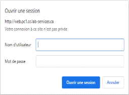 Remarque : cette boîte de dialogue n'apparaît pas si votre administrateur CIC configure votre navigateur de telle sorte que les informations d'identification Windows puissent arriver automatiquement au serveur CIC. De plus, l'apparence de cette boîte de dialogue varie selon le navigateur que vous utilisez.