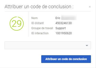 Si un code de conclusion est requis et que vous n'en avez pas encore attribué, vous êtes invité à attribuer un code de conclusion une fois que votre mission au sein de l'interaction s'achève.