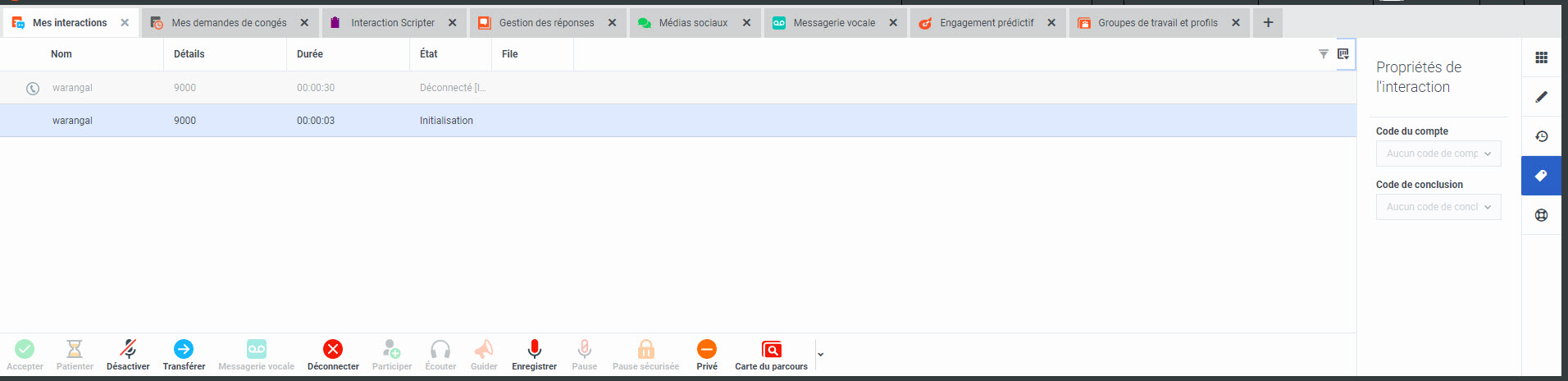 Remarque : le code de conclusion que vous visualisez ou attribuez ne s'applique qu'au segment d'interaction créé lorsque vous étiez connecté à l'interaction.