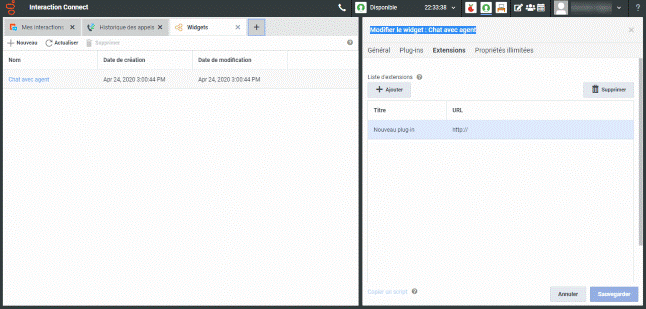 Exigences : pour configurer des extensions, vous devez disposer du droit de sécurité Configuration du widget principal. Pour plus d'informations, consultez la rubrique Widgets.
