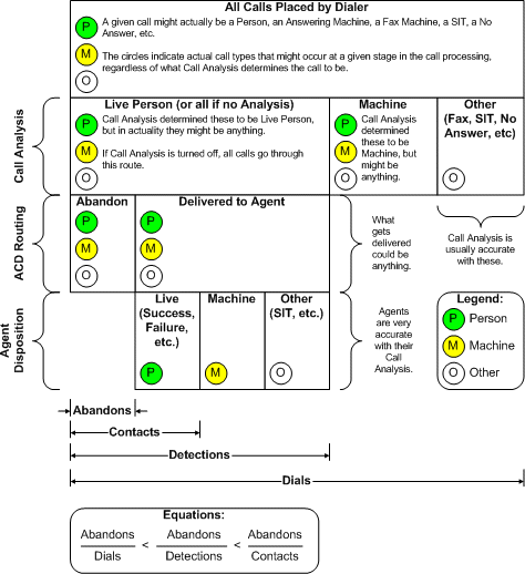 The method used to calculate Abandon Rate can directly affect agent idle time and the speed of outbound dialing. The Detections option calculates abandon rate in a way that plans for less-than-perfect Call Analysis. The best way to understand this option is to consider a real-world scenario.