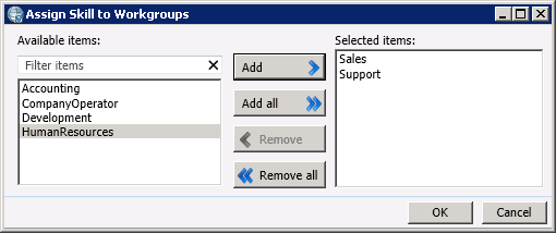 Select the Skill Set. Then click Add to move it to the Selected Items list. Repeat to assign other skill sets as needed.
