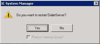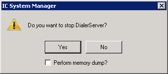 Click Yes to confirm that you wish to stop DialerServer. Performing a memory dump is optional, but takes extra time.