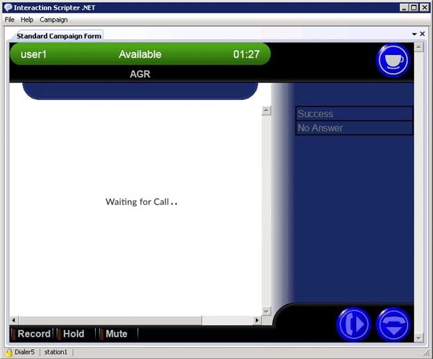 Interaction Scripter .NET Client populates your display with information pertaining to the call, the customer, and the campaign, based on behavior defined in a script. All information that you collect or modify during the call is routed back to database tables. Scripts can be simple or highly elaborate, depending upon customer needs. Scripts are written in HTML and JavaScript—the markup languages of the Internet. Campaign scripts run in Interaction Scripter Client. You cannot execute scripts in a web browser, but navigating a campaign script is as easy as surfing the Internet. To interact with a script, you use simple point-and-click mouse movements, and enter information using your keyboard.