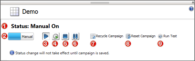 Visually indicates whether or not the Campaign is running under Auto or Manual control or in accordance with a schedule.
