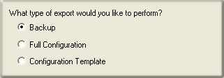 A backup export can save configurations for multiple servers. Full Configuration and Configuration Template exports apply to a single server only.