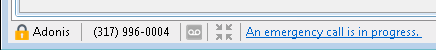 When an emergency call alert is issued, you see a warning that an emergency call is in progress. This warning appears as a hyperlink in the Interaction Desktop Notification area. Click this link to display the Emergency Call Alert dialog box.