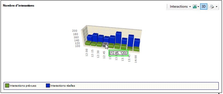 Vous pouvez utiliser la vue de graphe pour afficher les informations d'analyse Intraday dans un ou plusieurs onglets de graphes. Remarque : vous ne pouvez pas calculer les niveaux de service ou l'ASA sur le serveur CIC.