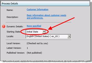 The name "initial state" is optional. You can also add other states. In the Process Details view (see figure), you can select the starting state for your process.
