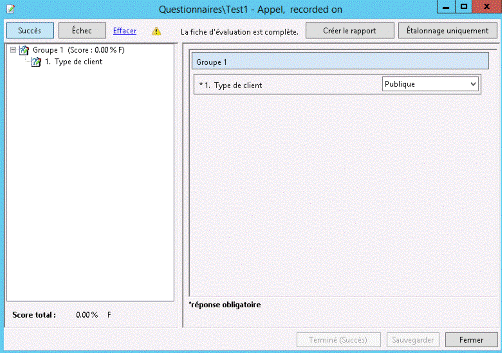 la fiche d'évaluation apparaît, vous pouvez demander à l'agent
