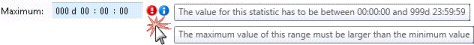 When clicked, the blue icon displays the acceptable range of criterion. If you supply a value that is out of range, a red icon is shown. Click on it to find out what is invalid. The dialog's "OK" button is disabled when values are out of range. -