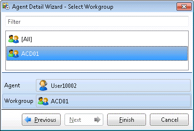 1. Click to select a workgroup by name, or select [All] for all workgroups this agent is a member of. Optionally use the Filter box to locate specific workgroups by typing starting characters of the name.