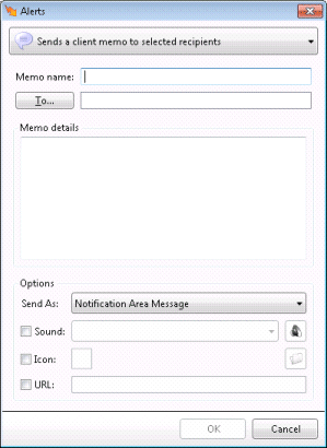 The Client Memo dialog composes a message to send from Interaction Supervisor to CIC client users. Messages can be addressed to any combination of workgroups or agents. A Client Memo is not an email message. A client memo appears in a CIC client as a notification along the bottom edge of the client window, or as a desktop alert (toast pop-up). See Manage Client Memos for more information.