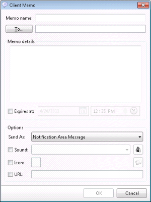 The appearance of the Client Memo dialog varies depending upon the method used to configure the message: