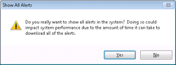 Check Show all alerts in the system. You are asked to confirm this operation, because it introduces performance overhead.
