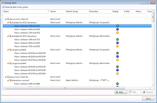 When you are finished, click Close to dismiss the Manage Alerts dialog.