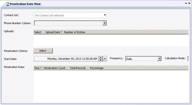 The Penetration Rate view provides details about Dialer penetration rates.