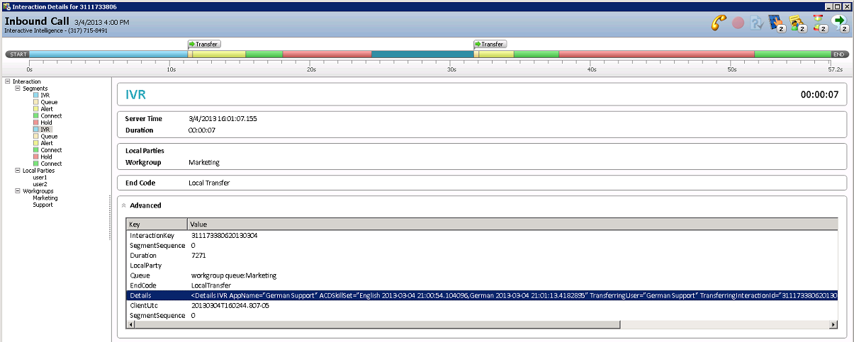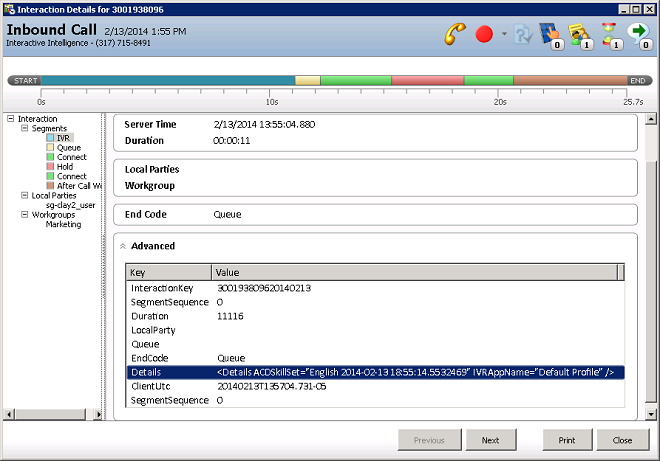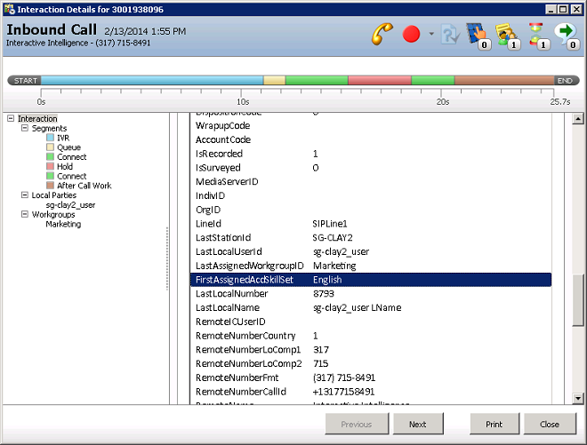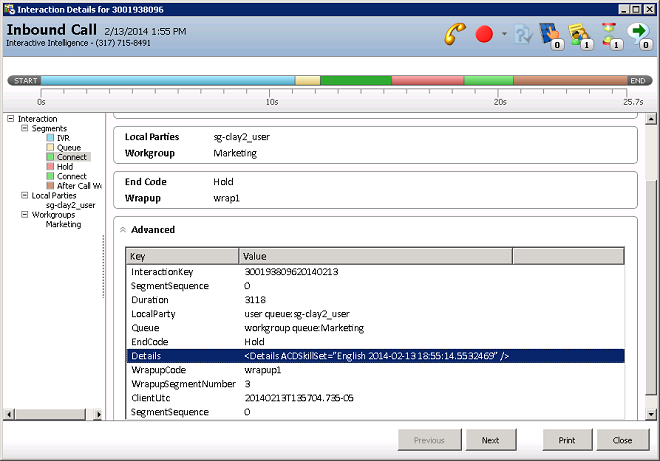 Interaction Detail Viewer logs the ACD skill set at the beginning of an interaction and by segment, if applicable, for the duration of the interaction.