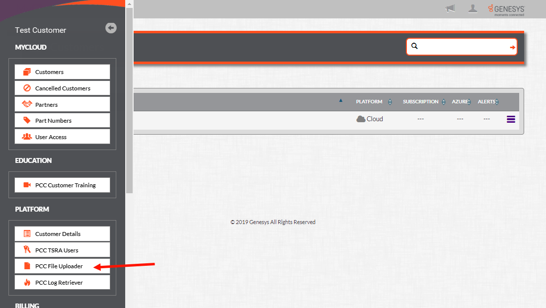 Click PCC File Uploader to show the PCC File Uploader interface.