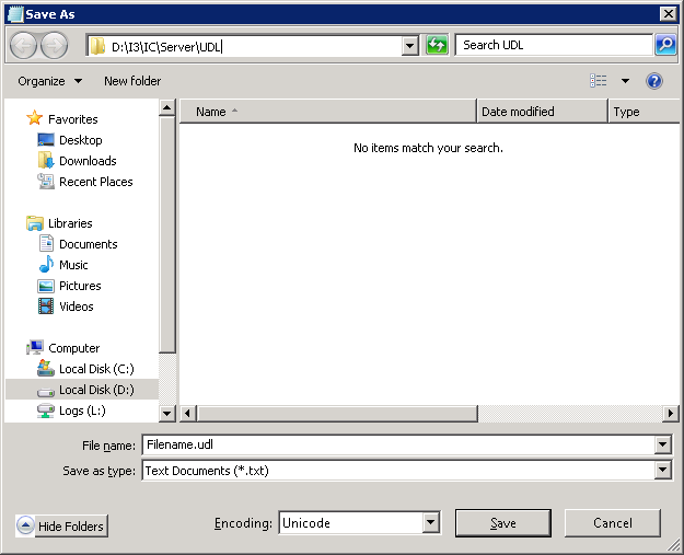 Navigate to the UDL folder (X:\I3\IC\Server\UDL).