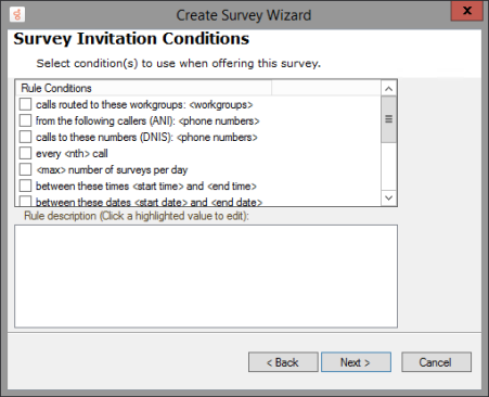 On the Survey Invitation Conditions page select the conditions to use when offering this survey.