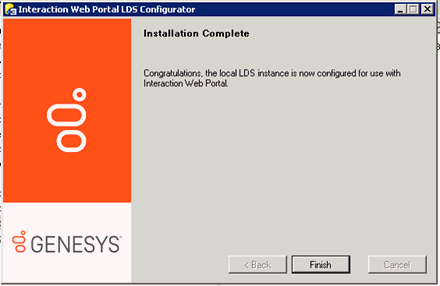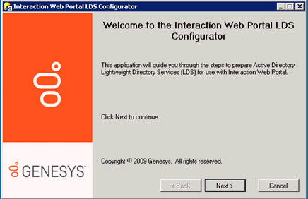 Before you install Interaction Web Portal, first install Active Directory Lightweight Directory Services (AD LDS).The Interaction Web Portal LDS configurator, which prepares the AD LDS for use with Interaction Web Portal, was placed in the CIC server directory when you installed CIC.