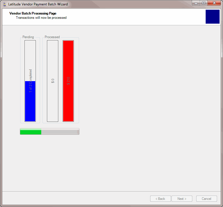 Successful: The vendor or bank processed the transactions on this tab successfully and the wizard created a payment batch in Latitude.
