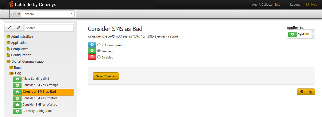 In the Navigation pane, click Digital Communication > SMS > Consider SMS as Bad.