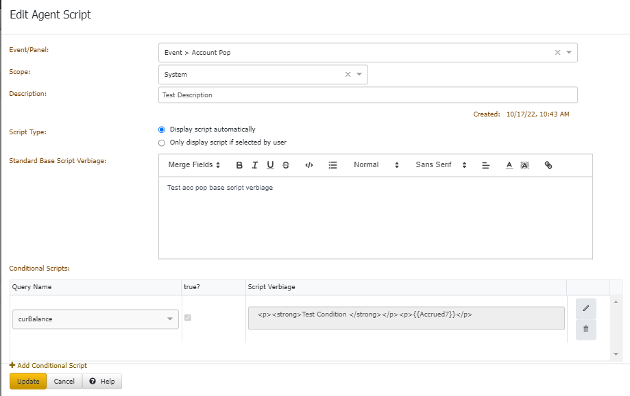 the script. The Edit Agent Script page appears.