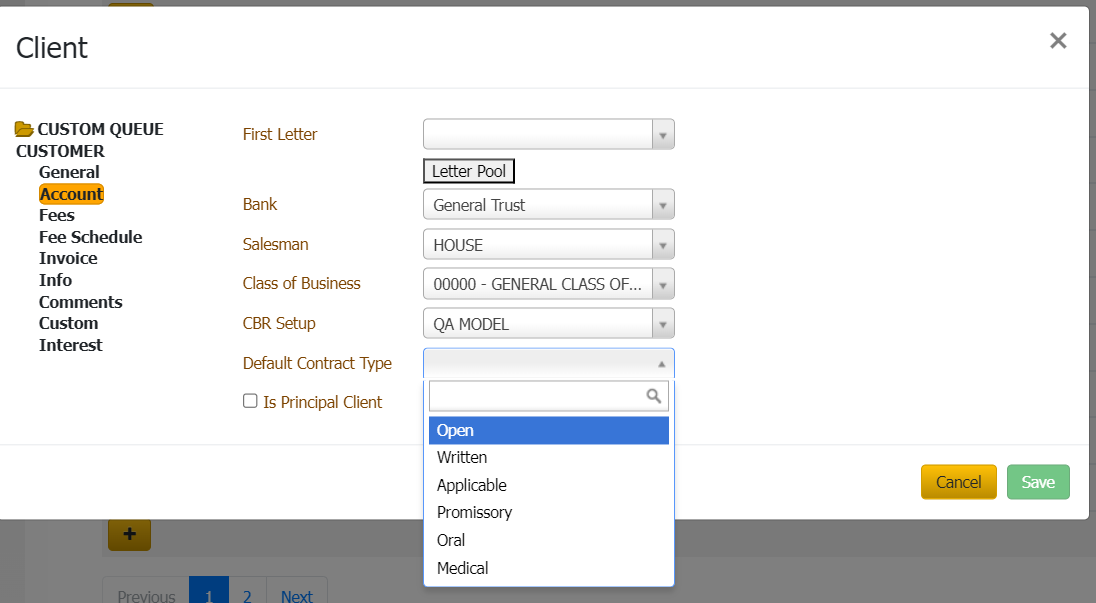 Is Principle Client: If selected, your organization owns the accounts that this client holds. If cleared, your organization holds this client's accounts for collection purposes only.