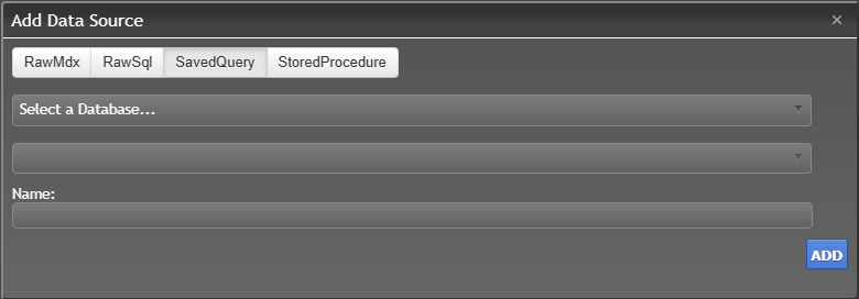 In the Name box, type a name for the data source and then click Add. Dashboard adds the Saved Query data source to the Data Sources section.
