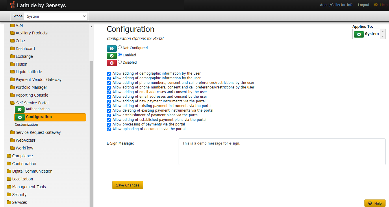 In the Navigation pane, click Applications > Self-Service Portal > Configuration.