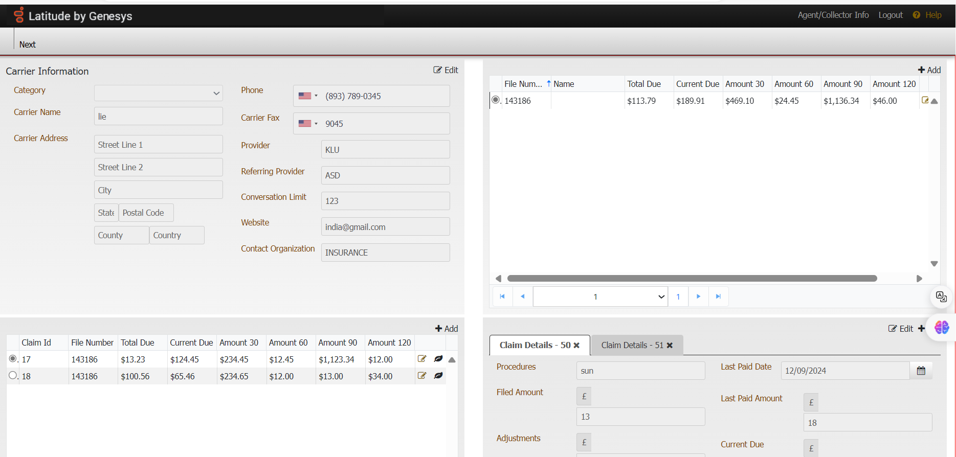 Carrier Information: It shows detailed information of the Carrier.