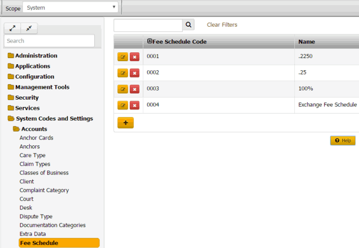 In the Navigation pane, click System Codes and Settings > Accounts > Fee Schedule.