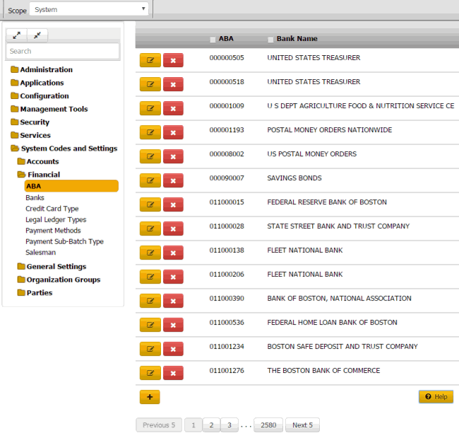 In the Navigation pane, click System Codes and Settings > Financial > ABA.