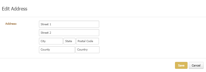 In the Edit Address dialog box, click to edit the street, city, state, postal code, county, and country details.