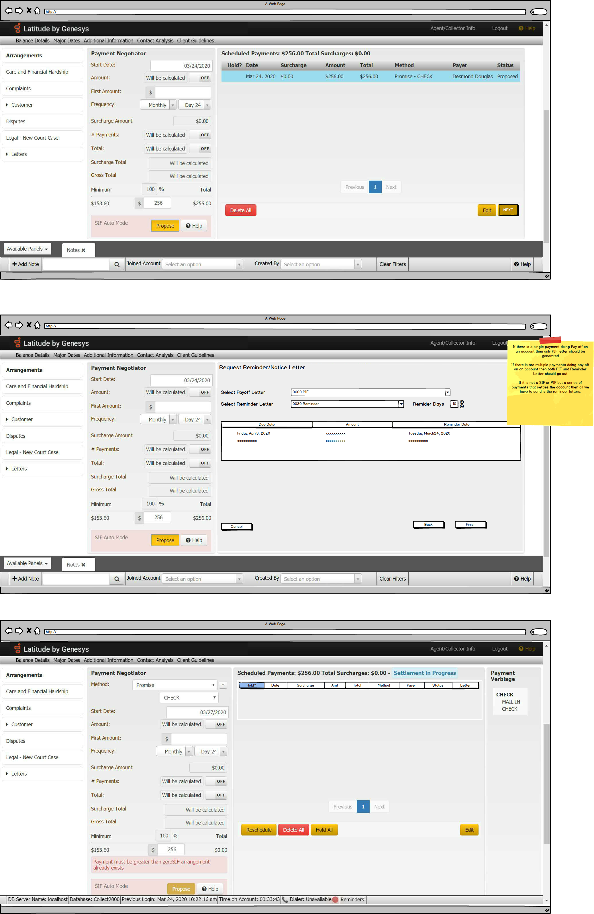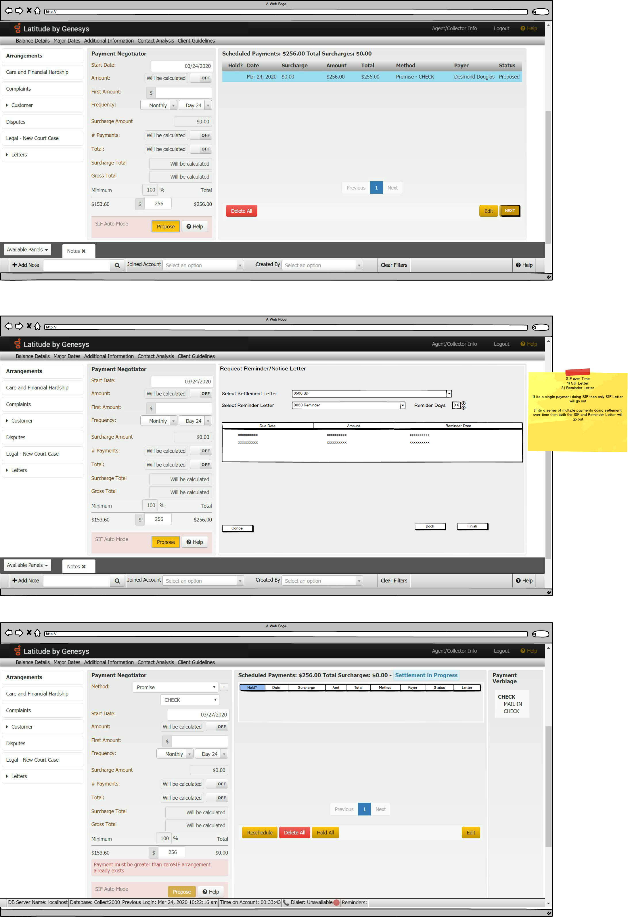 you can request a specific SIF /PIF/Reminder Letter that can be generated when setting up a payment arrangement. You can select a specific SIF or PIF letter, as defined by letter type when creating a payment arrangement.
