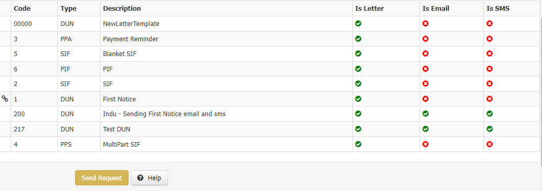 Use the Request Communication panel to request a letter/Emails/SMS for one or more parties on the account. The system restricts the available letters to those letters/Emails/SMS allowed for the account and client. You must have the Request Permission to request a letter. You must have the Linked Letters Permission to specify the linked accounts to include when requesting a linked letter.